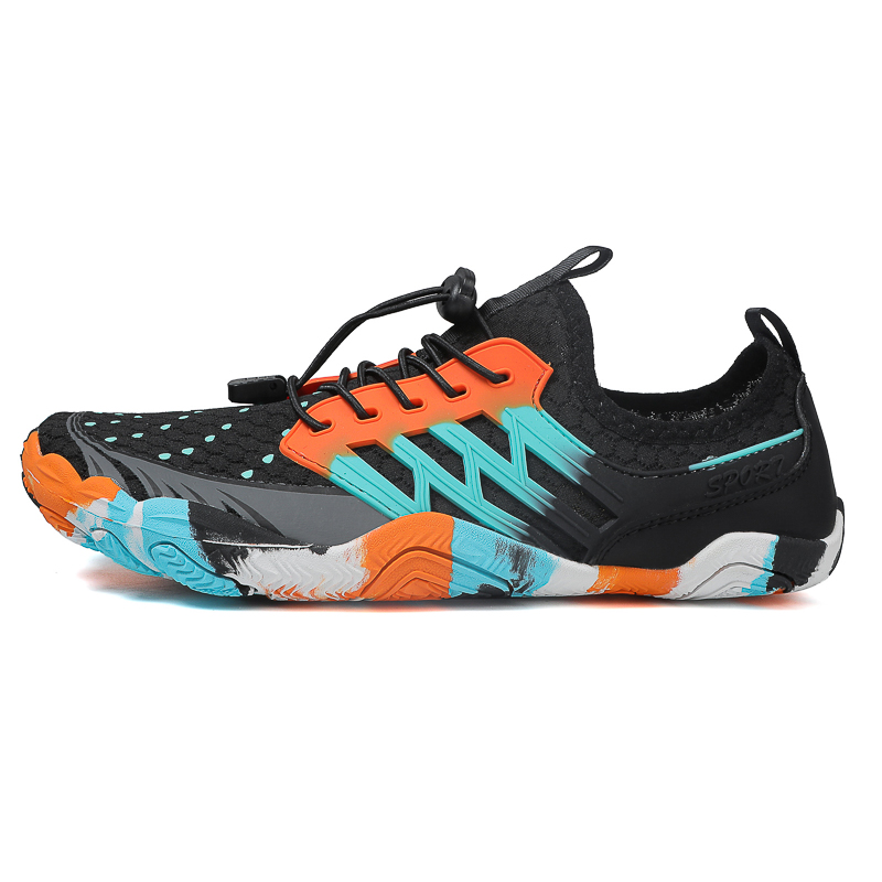 A durable rubber outsole with a textured, non-slip pattern ensures stable grip on wet rocks, sand, and slippery surfaces. The flexible sole supports natural foot movement, improving balance and ground feel during walking, training, or water sports.