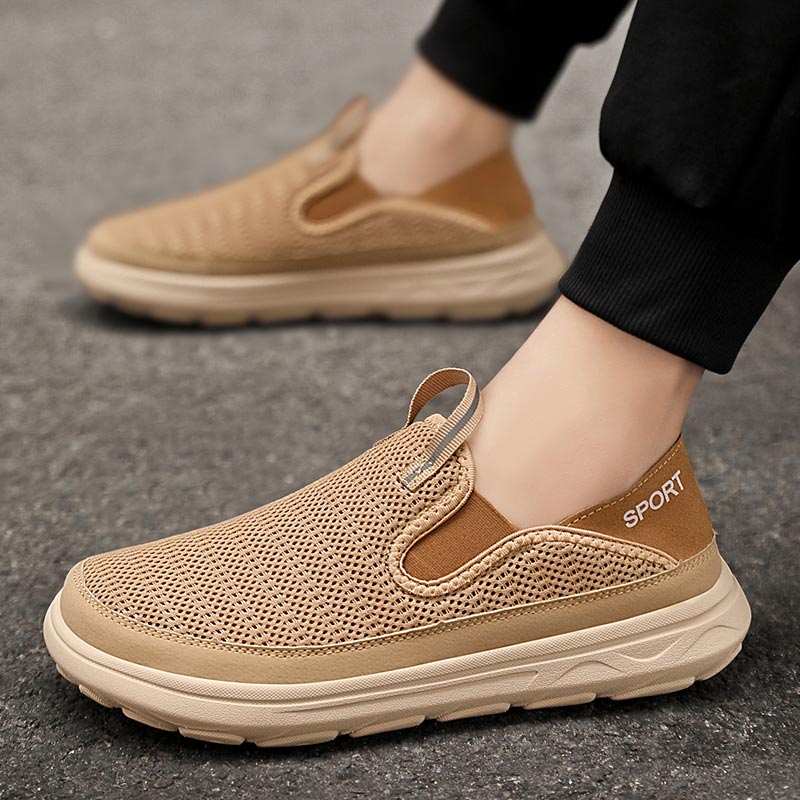 Comfortable slip-on walking shoes featuring a breathable mesh upper, elastic side panels, and a cushioned sole for effortless all-day wear.