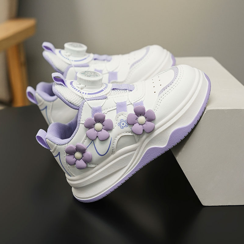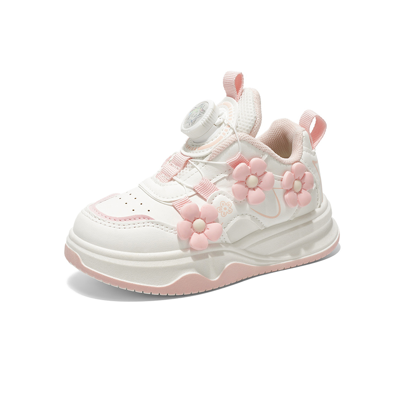 These casual sneakers combine a soft, cushioned sole with a secure dial closure system, allowing kids to put on and take off shoes easily by themselves. The charming flower decorations add a sweet, playful look, while the supportive sole keeps feet comfortable during school days and outdoor activities.