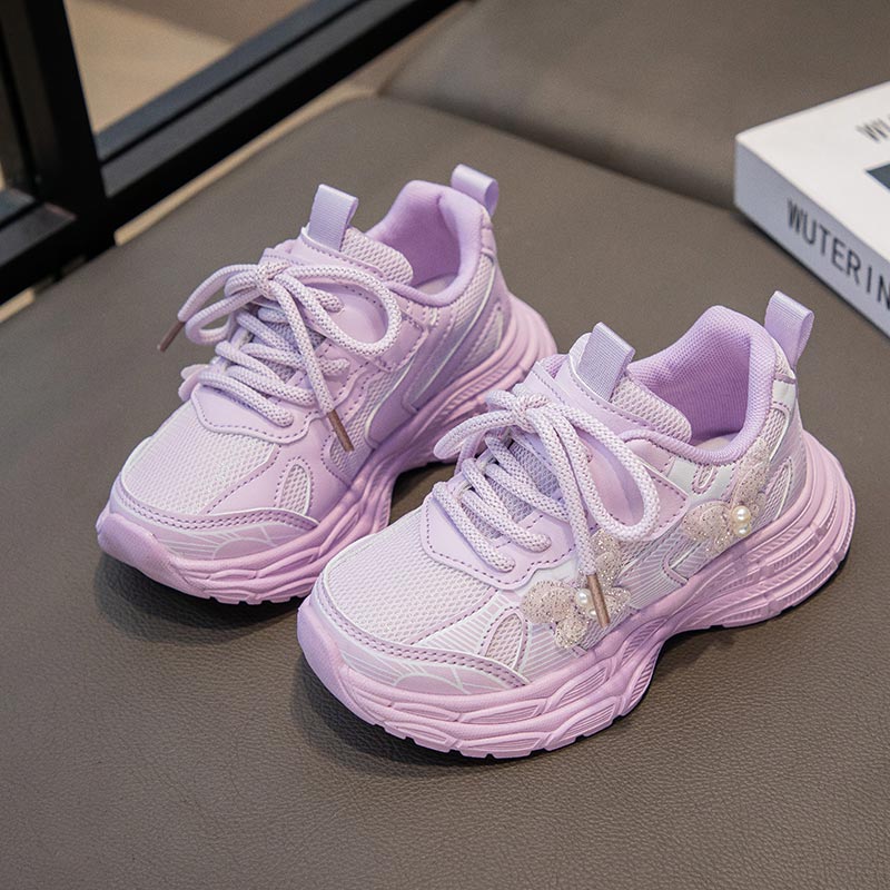 Designed for comfort and cute style, these girls’ casual sneakers feature a breathable mesh upper and lightweight cushioned sole—perfect for school and everyday wear.