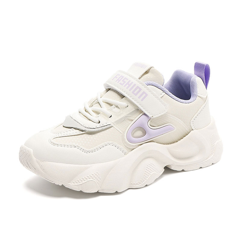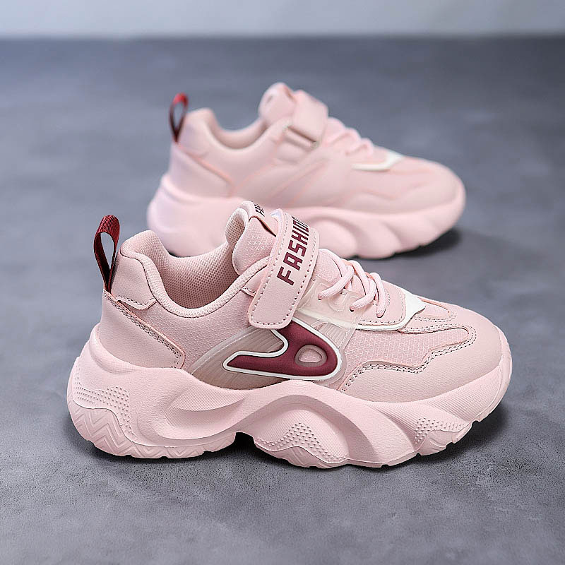These girls’ casual sport sneakers feature a chunky cushioned sole and easy hook-and-loop closure, perfect for school and daily activities.