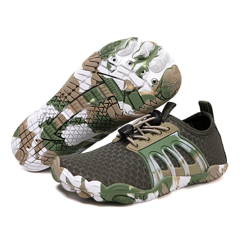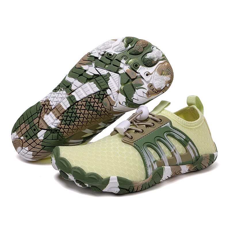 The breathable knitted upper dries quickly, while the rubber outsole provides reliable grip on wet and slippery surfaces.
