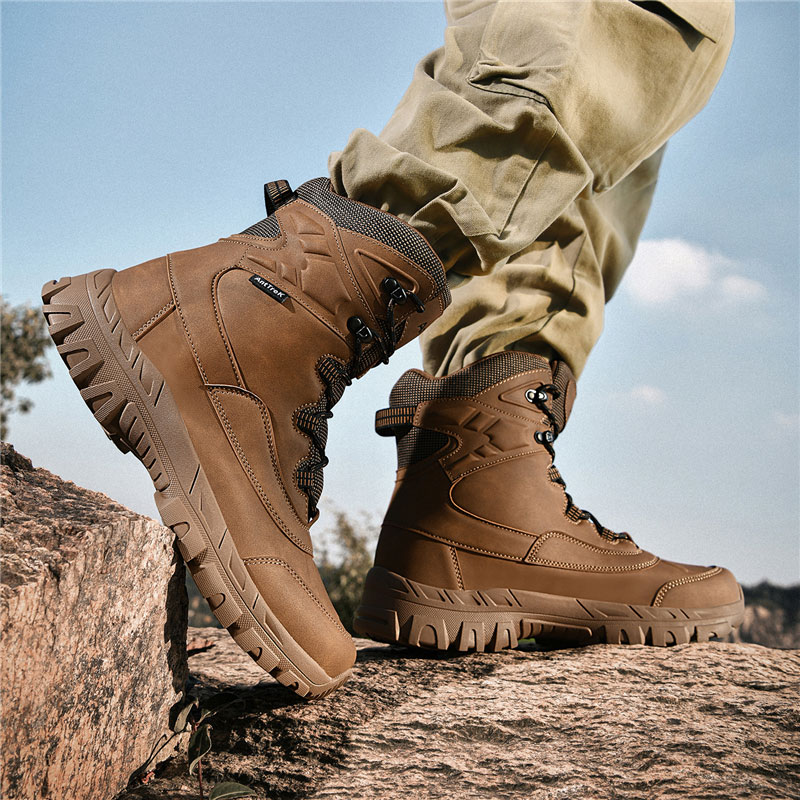 These high-top outdoor combat boots are built for protection, warmth, and durability in challenging environments.