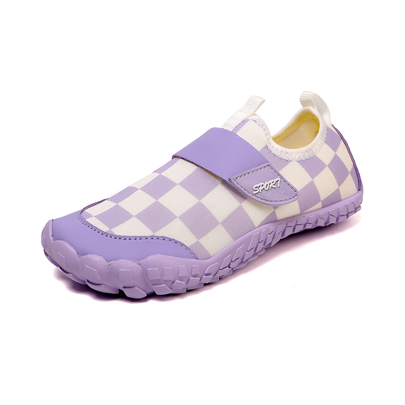 Lightweight kids’ beach water shoes made with quick-dry, sand-resistant fabric and a flexible anti-slip rubber sole. Designed for beach play, water activities, and daily movement training.