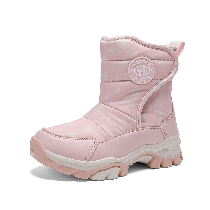A thick cushioned sole provides comfort and shock absorption, and the rugged anti-slip outsole offers reliable traction on snowy or slippery surfaces. The mid-calf design adds extra warmth and protection, making these boots ideal for winter play, school days, and outdoor activities.