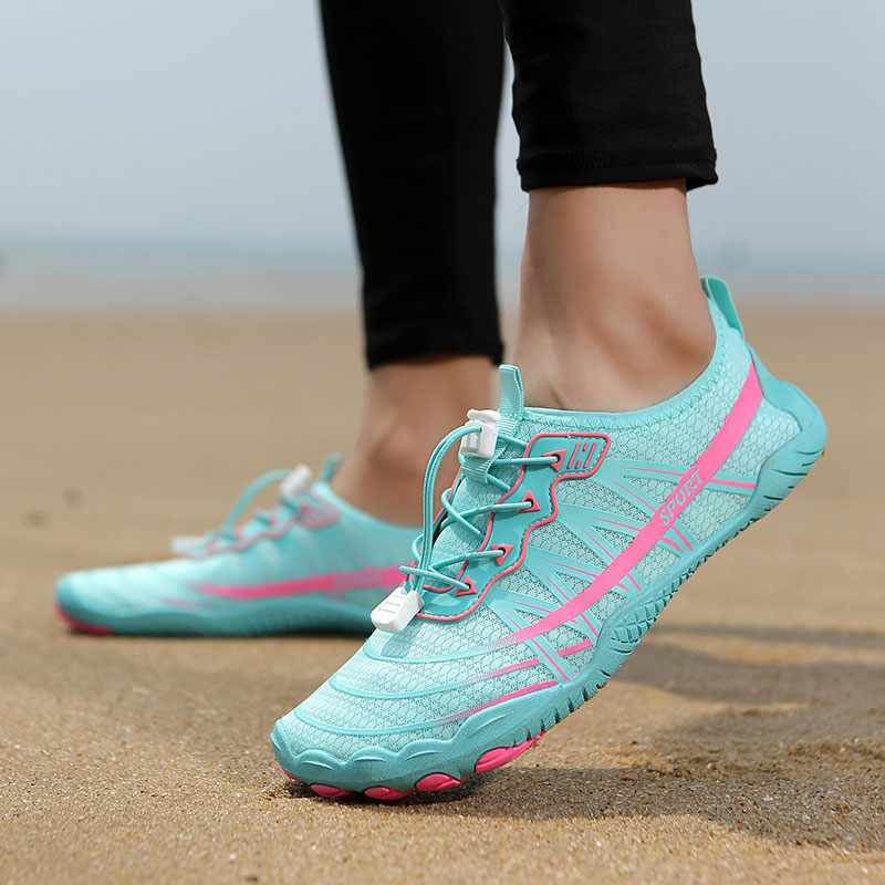 Designed for versatile outdoor use, these lightweight barefoot water shoes feature a breathable air-mesh upper, flexible five-toe rubber outsole, and cushioned EVA insole. Ideal for beach, water sports, hiking, and everyday casual wear.