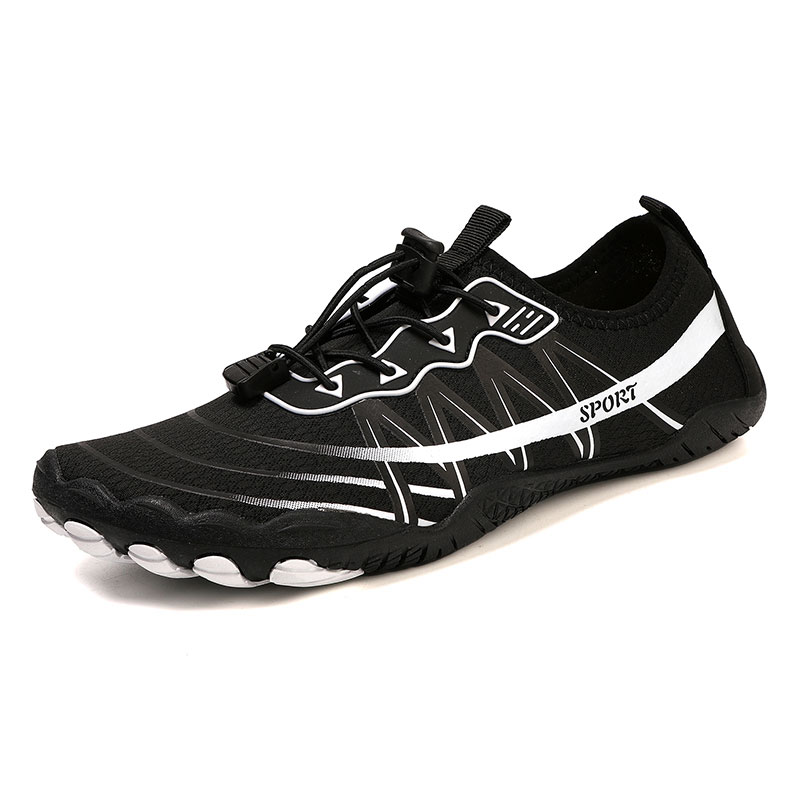 The breathable air-mesh upper combined with 3D rubber printing delivers excellent ventilation and support, keeping your feet cool and secure during movement. A flexible five-toe rubber outsole enhances natural foot motion while providing reliable grip on wet and dry surfaces.
