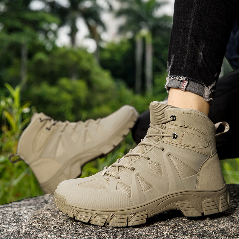 Designed for outdoor operations and rugged environments, these men’s tactical combat boots deliver durability, stability, and dependable performance. The upper combines TPU reinforcement with breathable mesh fabric, offering abrasion resistance while maintaining airflow during extended wear.