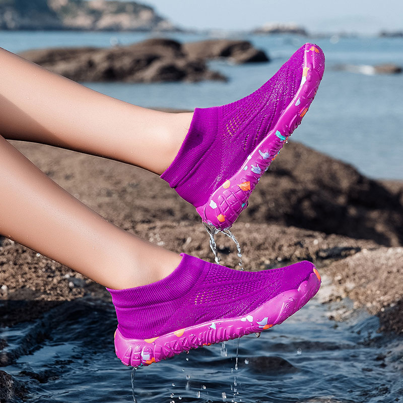 These quick-dry slip-on water shoes feature a flexible sock-like fit, anti-slip sole, and breathable comfort—perfect for beach, swimming, and outdoor water activities.