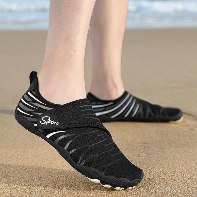 The breathable upper allows water to drain quickly while maintaining a snug, supportive fit. A flexible yet durable sole enhances natural foot movement, while the anti-slip outsole improves grip on wet sand, rocks, and uneven surfaces.