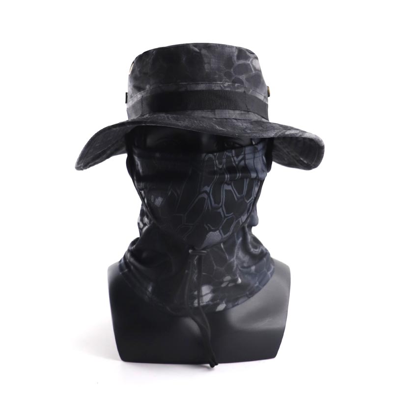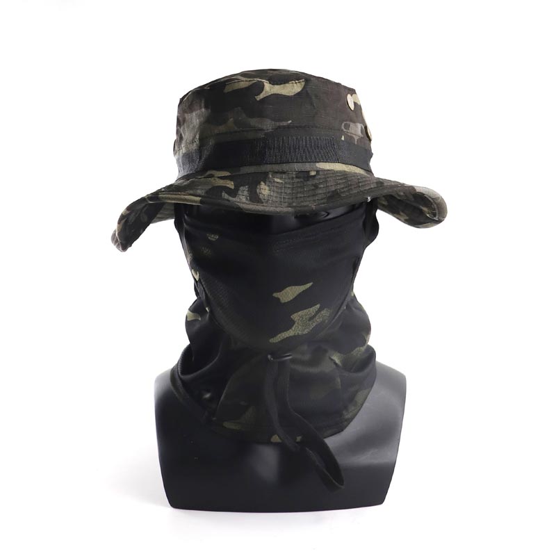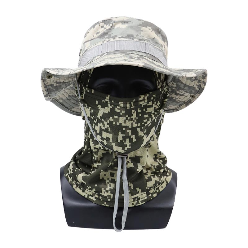 Designed for outdoor enthusiasts, this camo boonie hat combines a wide-brim sun hat with an integrated face cover to deliver full protection in harsh environments.